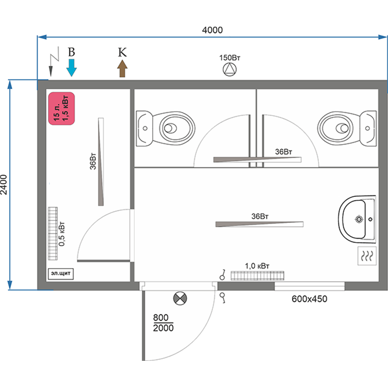 Туалетный модуль КМТ-02СК, 1 помещение, 2 места, универсальный.